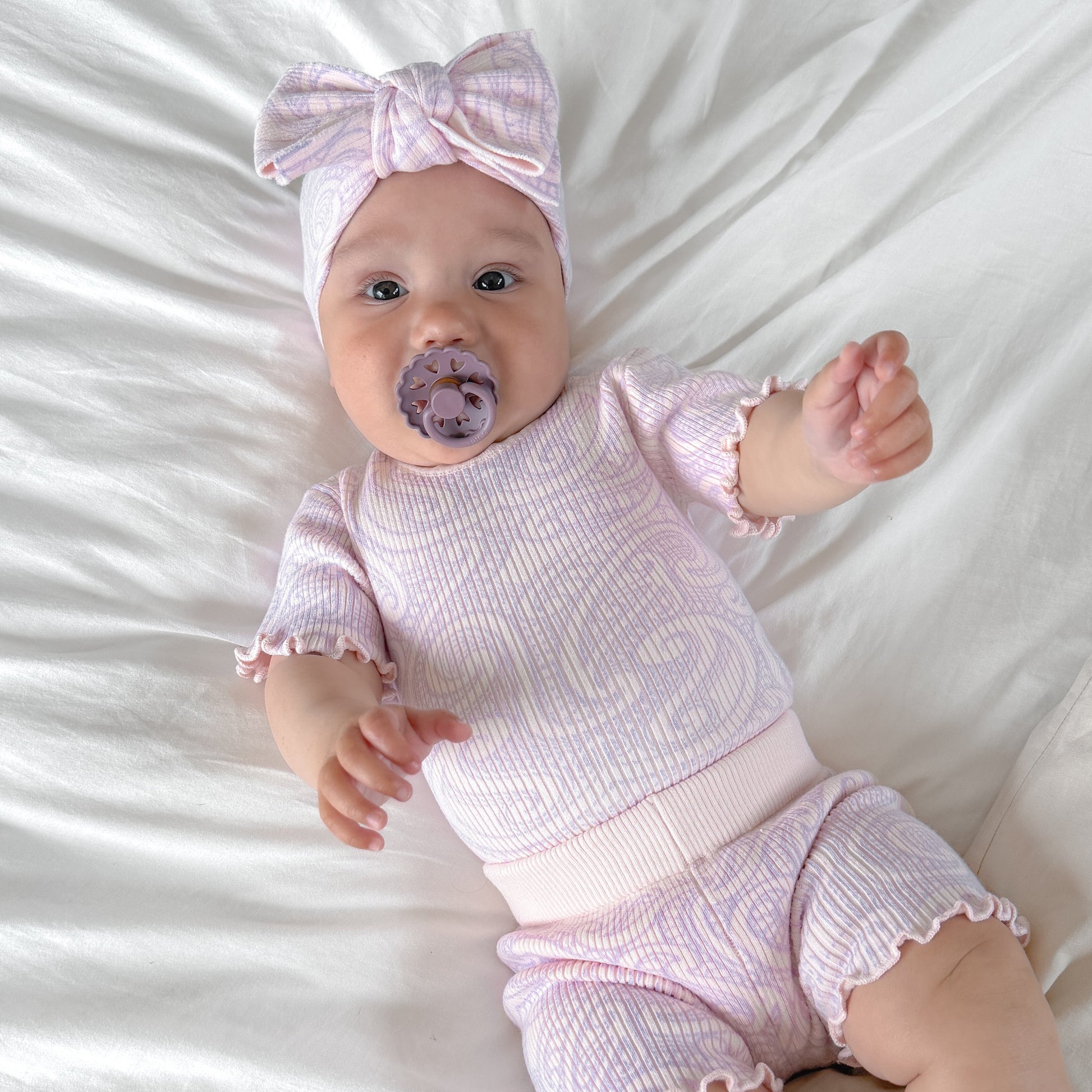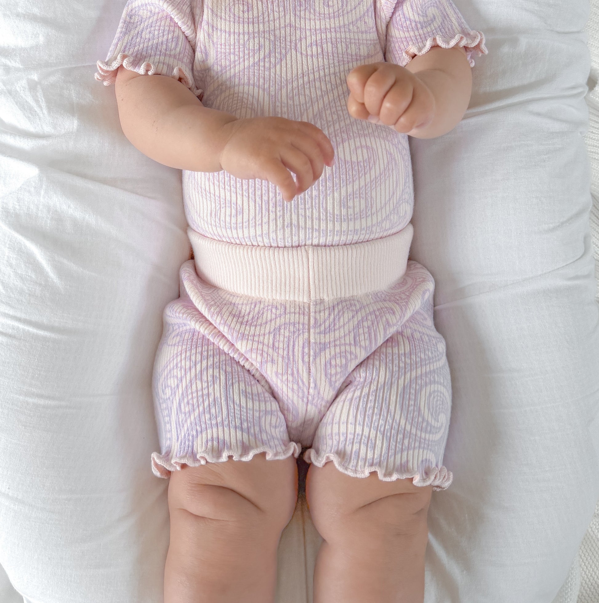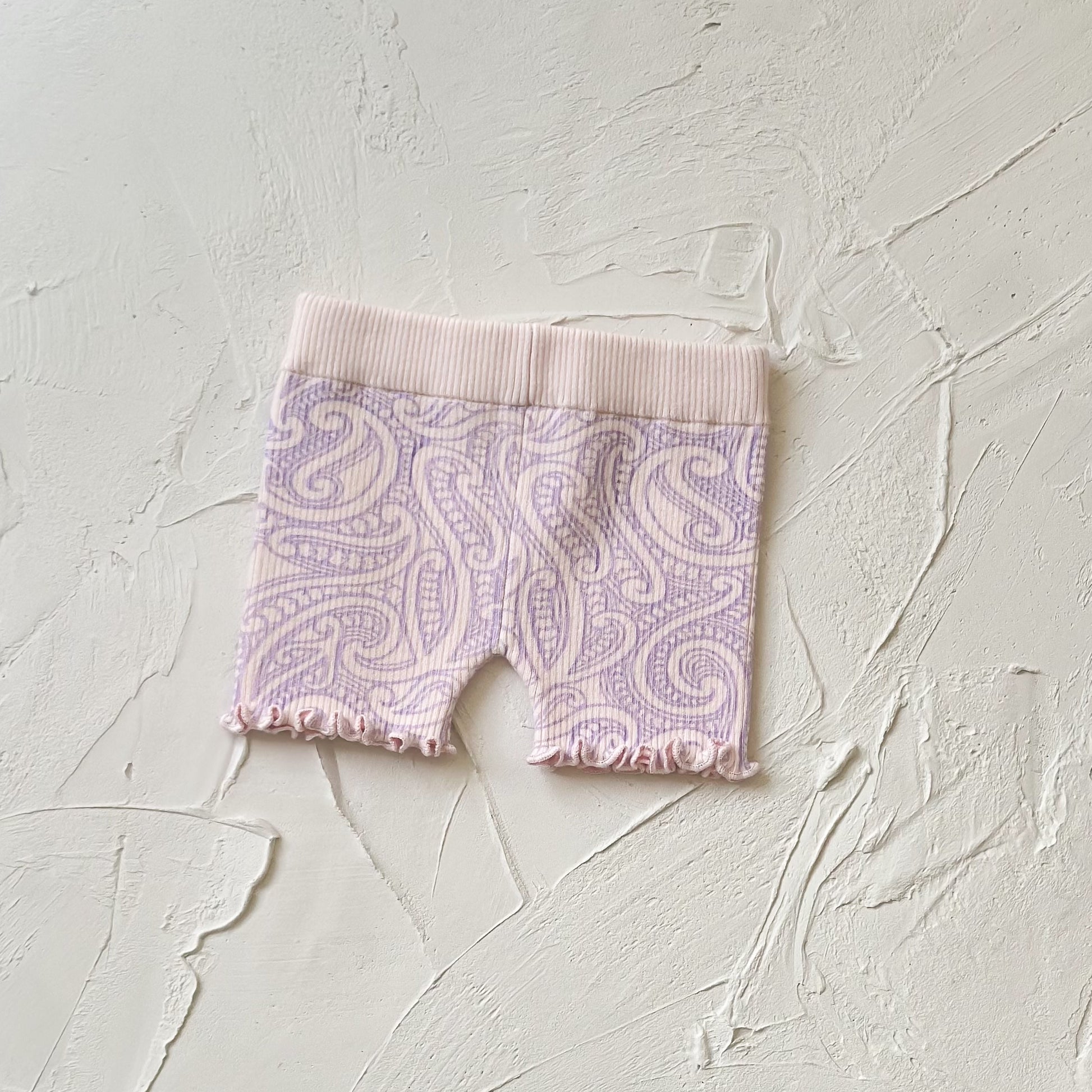 Knitted ribbed basics bike shorts - printed in our original wolf design in a soft pink colour way, and a lilac print