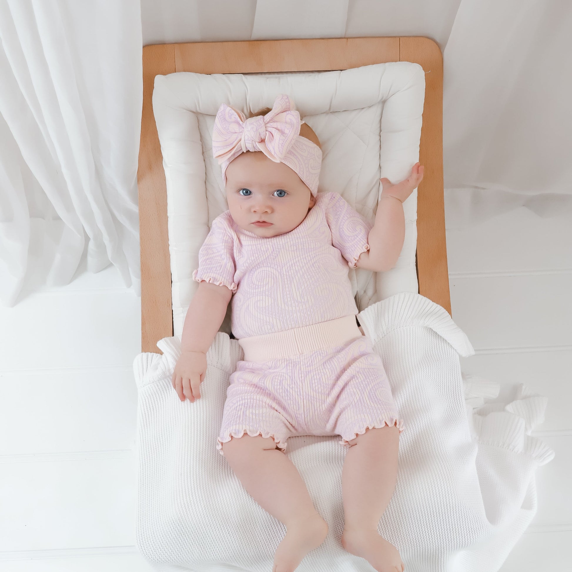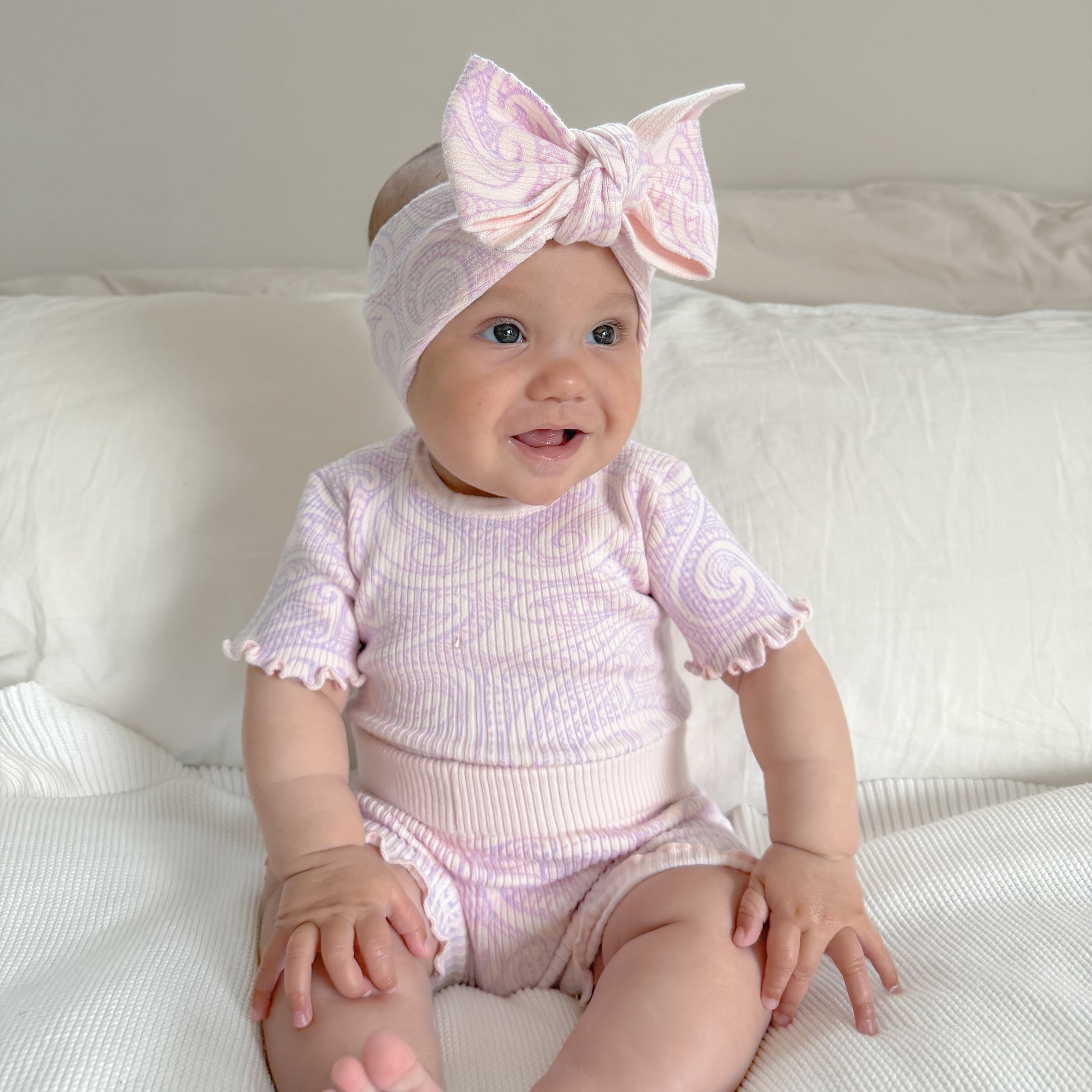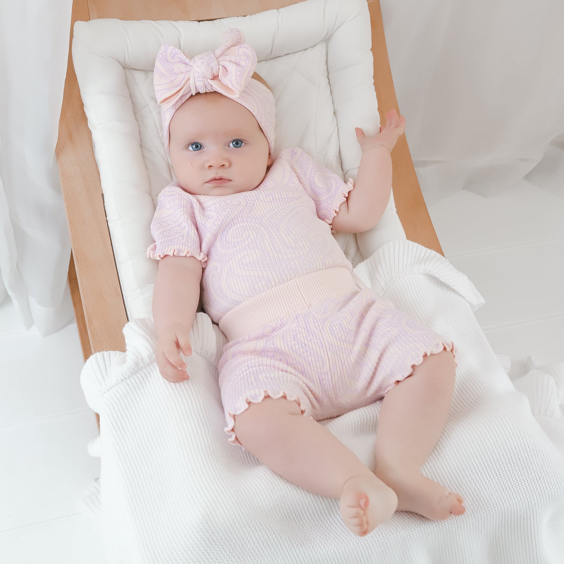 Knitted ribbed basics bike shorts - printed in our original wolf design in a soft pink colour way, and a lilac print